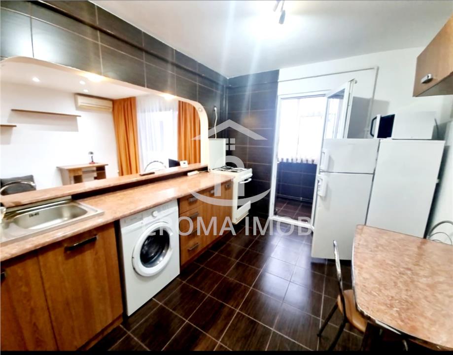 Inchiriere apartament 2 camere, decomandat, confort 1 situat in Ploiesti la etajul 4 al unui bloc cu structura P-10E, zona Republicii/McDonald`s. Suprafata utila de 52 mp este compartimentata astfel: living, dormitor, bucatarie, baie, hol. Apartamentul este recent renovat. Finisaje: gresie, faianta, parchet, tamplarie exterioara din PVC. Dotari: masina de spalat rufe, TV, frigider, canapea, apometre, usa metalica la intrare. Pozitia stradala a imobilului asigura accesul facil cu auto, locatia este recomandata ca resedinta pentru persoane pretentioase. Parcarea autovehiculelor se poate fata atat in fata cat si in spatele imobilului unde exista spatii special amenajate. Punte de interes: Piata Nord, McDonald`s, Lidle, magazine, farmacii, banci, terase, statii mijloace de transport.
