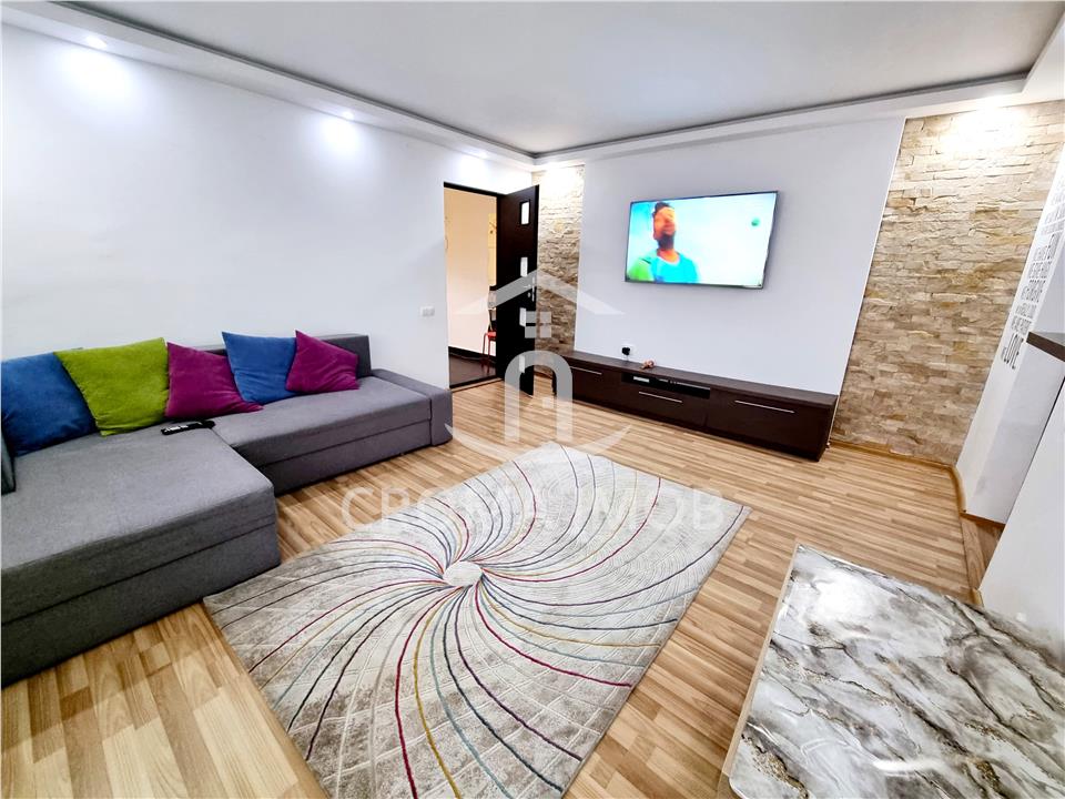 Apartamentul dispune de centrală proprie pe gaz, aer condiționat și un balcon generos cu priveliște deschisă. Livingul este luminos și mobilat modern, oferind un spațiu plăcut pentru relaxare, iar dormitorul include un pat matrimonial și dulapuri încăpătoare. Bucătăria este complet echipată, având frigider, aragaz, cuptor și mașină de spălat. Imobilul se află într-un bloc liniștit, cu vecini civilizați, într-o zonă cu acces facil către magazine, școli și mijloace de transport.