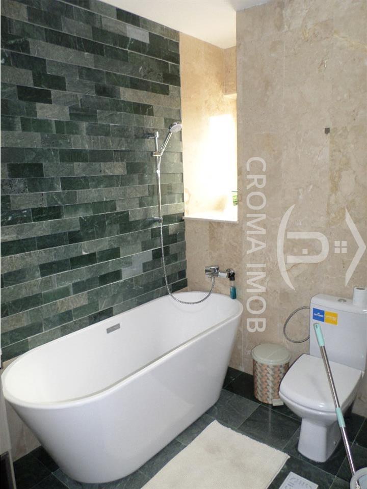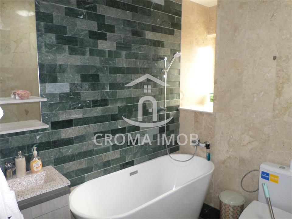 Dispune de urmatoarele dotari si finisaje: 1 loc de parcare la subsol, lift, usa intrare metalica, terasa 142 mp,instalatii pe cupru, calorifere din aluminiu, travertin, gresie, faianta, parchet laminat, vopsea lavabila, tamplarie PVC cu geamuri termopan.