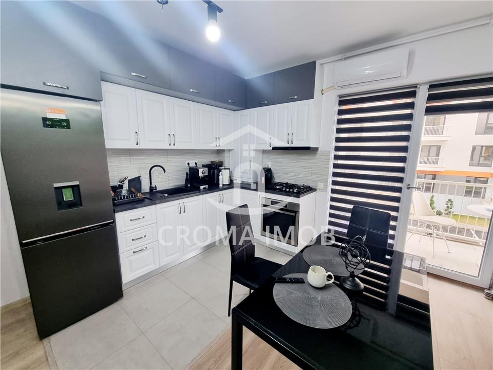 Apartamentul are o suprafață utilă de 72 mp și o suprafață construită de 85 mp, fiind compartimentat eficient: living luminos open-space cu bucătăria, 2 dormitoare, 2 băi, hol și balcon deschis, amenajat cu măsuță și scaune pentru exterior – ideal pentru relaxare.