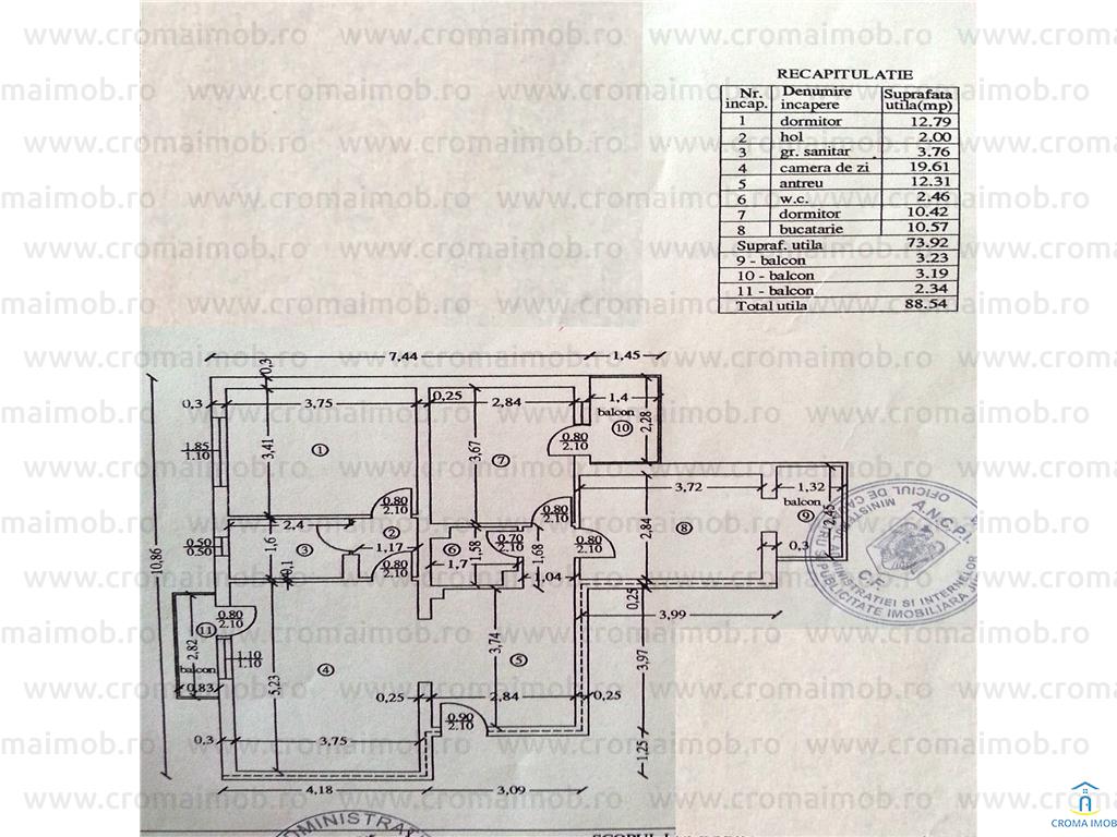 CRM520820: CromaImob Ploiesti - Vanzare Apartament 3 camere, zona Marasesti-Supermarket Profi, confort 1, situat la etajul 3 al unui bloc cu structura P+8E construit in 1990, suprafata utila de 84 mp, suprafata construita 98 mp.